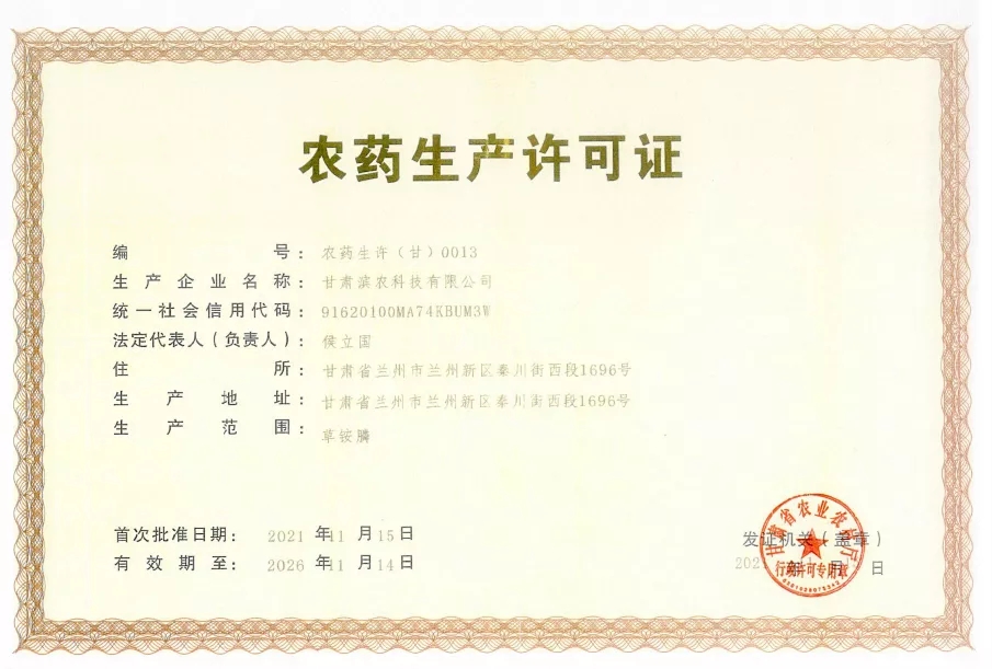最終,甘肅濱農順利通過草銨膦原藥農藥生產許可審查并取得農藥生產許可證(證號為農藥生許(甘)0013),進一步夯實了公司生產基礎,為濱農戰(zhàn)略發(fā)展再添強勁動力。