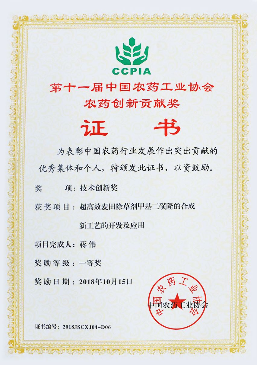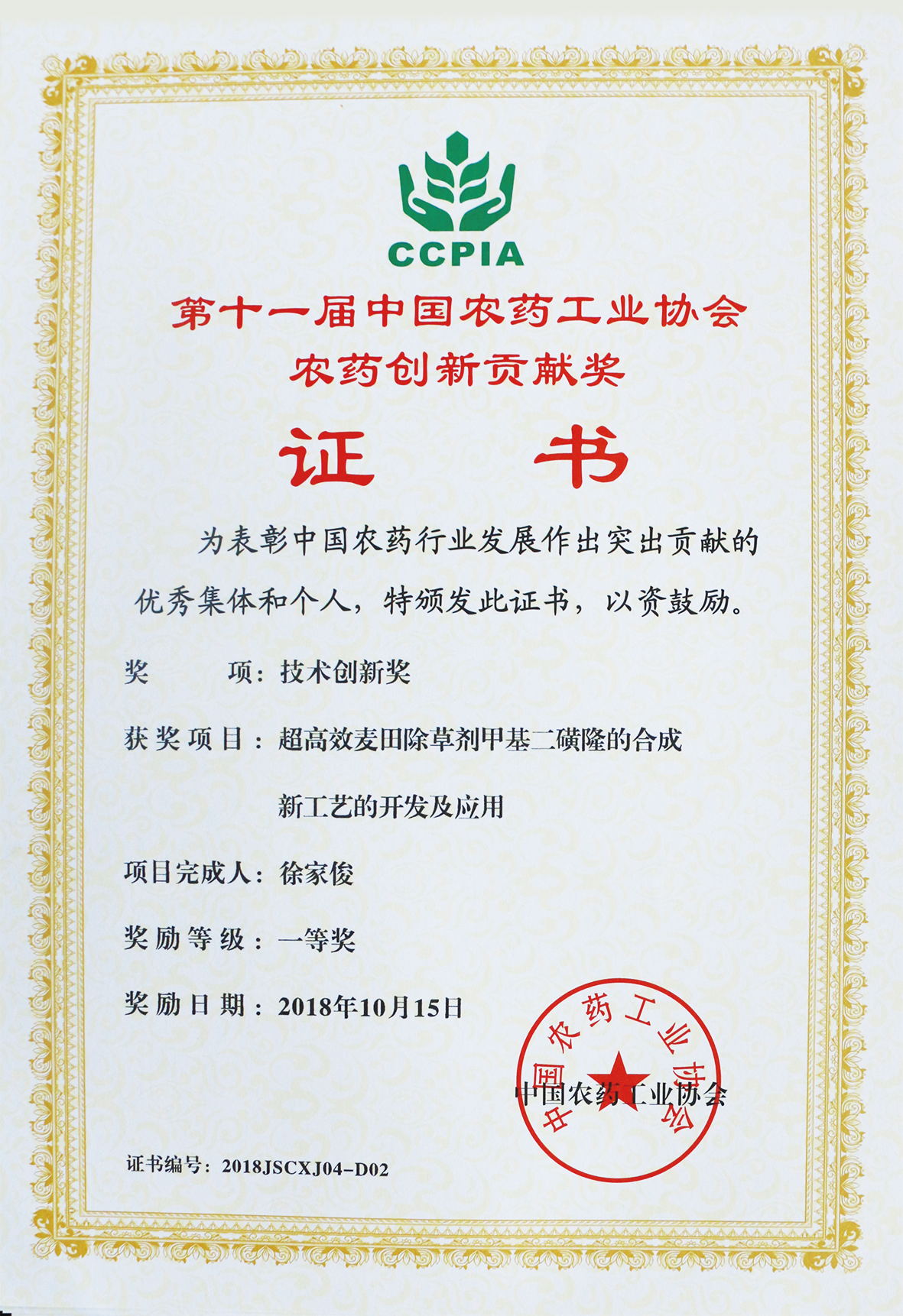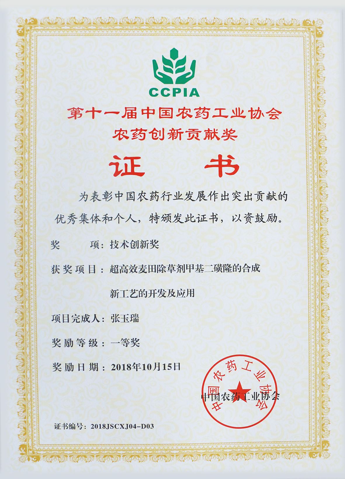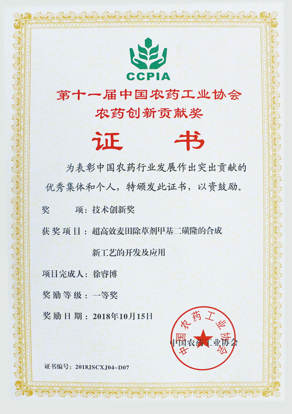 ■2021-04-08 我公司“25%苯醚甲環(huán)唑懸浮劑” 配方榮獲三等獎