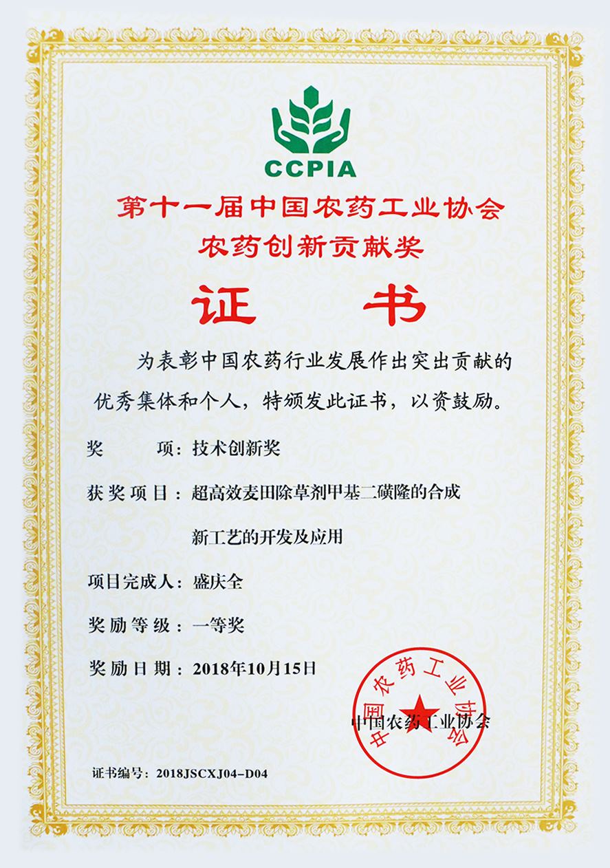 據(jù)悉,在被評定為綠色產(chǎn)品的11家石油和化工行業(yè)企業(yè)中,僅有2家農(nóng)藥化工企業(yè)獲此殊榮。我公司研究所所長盛慶全參加了此次大會,并代表公司上臺領(lǐng)取證書。