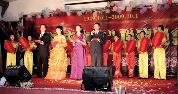 2009年9月30日晚,濱農(nóng)園內(nèi)歌舞歡騰,氣氛熱烈。濱農(nóng)科技 “迎祖國(guó)60華誕,譜濱農(nóng)文化新篇‘濱農(nóng)之聲’聯(lián)歡晚會(huì)”在西餐廳圓滿舉辦,來(lái)自各分廠車間部室的觀眾濟(jì)濟(jì)一堂,在歡呼互動(dòng)中和臺(tái)上的演員共同營(yíng)造了一個(gè)愉快祥和快樂(lè)的夜晚。公司總經(jīng)理任立明為晚會(huì)致辭。
