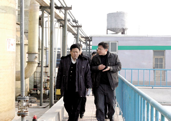 2009年12月22日上午,國家環(huán)保部華北督查中心領(lǐng)導會同省環(huán)保廳領(lǐng)導,在市環(huán)保局局長王惠軍、區(qū)環(huán)保局局長孫文博等人的陪同下,蒞臨我公司視察污水處理再提高工程完成情況。公司董事長黃延昌、生產(chǎn)總監(jiān)張玉瑞全程陪同并做詳細匯報。