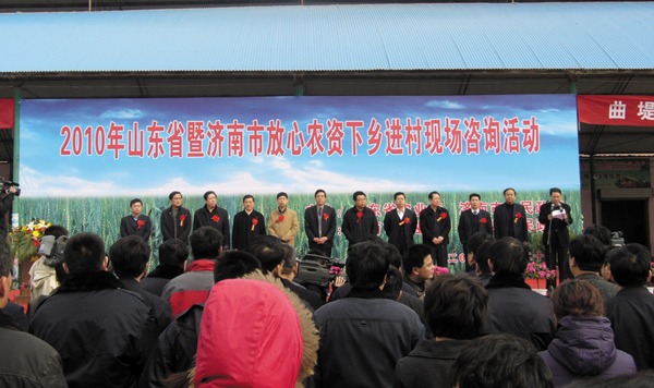 2010年3月23日上午,2010年“山東省暨濟南市放心農資下鄉(xiāng)咨詢活動”在濟陽曲提鎮(zhèn)菜市場舉行。本次活動由山東省農業(yè)廳、濟南市政府和濟陽市政府聯(lián)合舉辦。會場選在鎮(zhèn)政府菜市場當中,人流如織,賣菜的農民順便參與到活動之中。濱農是山東農藥企業(yè)唯一的代表,公司帶去了適合當?shù)厥褂玫某輨、殺蟲殺菌劑產品和宣傳材料;顒又袕V大農民對我們的產品十分感興趣,我們詳細解答了農民朋友在使用中遇到的諸多實際問題。本次活動是去年我們所參加的省政府兩次活動的繼續(xù),對提升濱農品牌的知名度十分有意義。