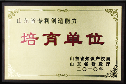2010年4月22日,我公司被評審為“2010年度山東省專利創(chuàng)造能力培育單位”,該獎項由省財政廳、省科技廳、省教育廳、省國資委、省科學院、省知識產權局、省專利技術保護鑒定中心等單位(部門)共同評審確定,每年度全省評出15家單位進行重點培育。根據(jù)相關規(guī)定,我公司正式掛牌進入三年培育期,培育期內將獲得省知識產權局給予的10萬元專項資金支持。